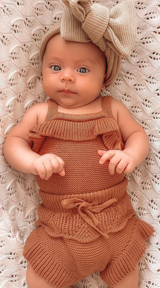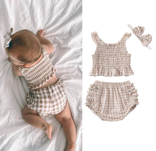 3-piece Plaid Sleeveless Ruffle Top & Shorts