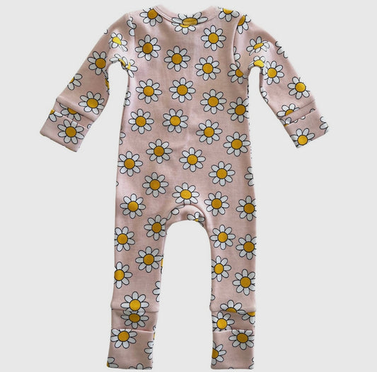 2-Way Zip Daisy Taffy Romper with fold over Cuffs and Feet