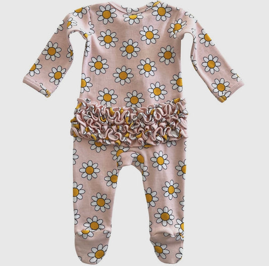 2-Way Zip Daisy Pop Taffy Girl Ruffle Footie with Fold Over Cuffs