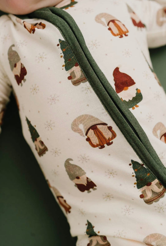 Christmas Gnomes Zipper Bamboo Sleeper with Fold Over Hands & Feet