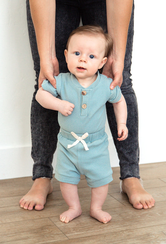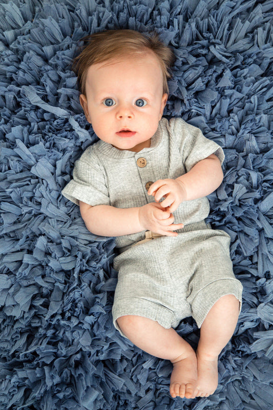 Baby Boy Grey Ribbed Bodysuit and Shorts Set