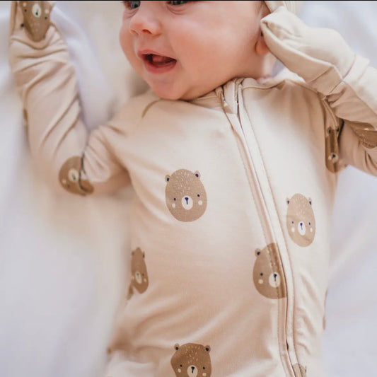 Baby Boy Bamboo Stone Grey 2 Way Zip Footie with Fold Over Hands and Feet