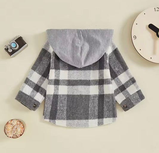 Boy Long Sleeve Zip Up Hooded Plaid Jacket