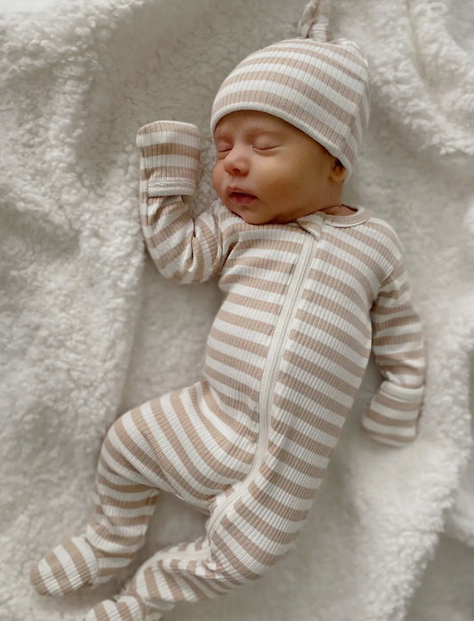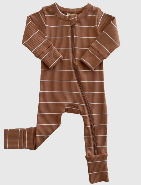 Sold outTan Stripe Ribbed Zip Footie