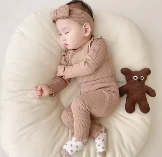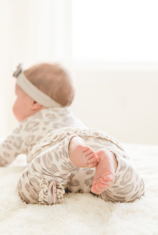 Baby Girl Leopard Bamboo Ruffle Sleeper with 2 way zipper and fold over hands and feet