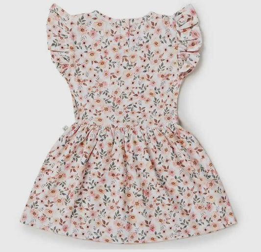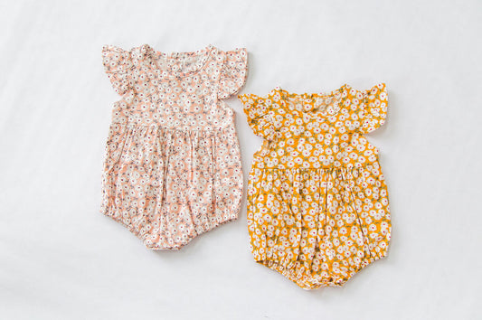 Baby Girl Cotton Bubble Calico Floral Romper with Flutter Sleeves