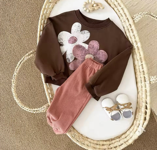 Toddler Flower Pullover Top and Mauve Corduroy Set