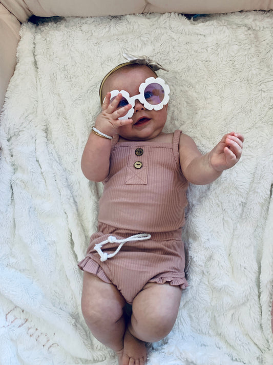 Mauve Sleeveless Ribbed Bodysuit & Shorts Set