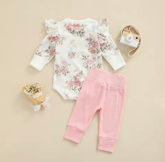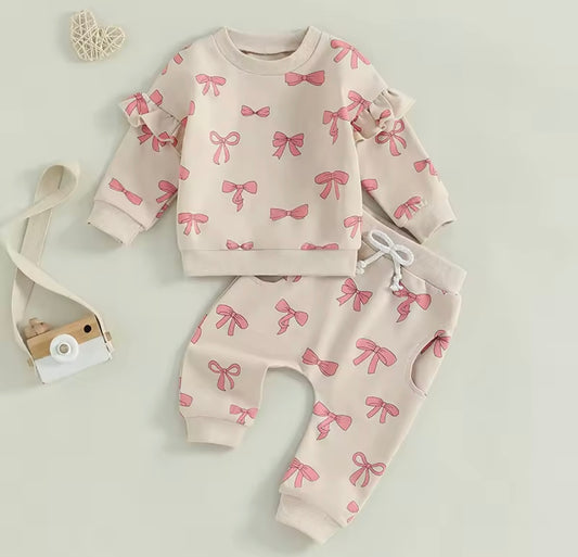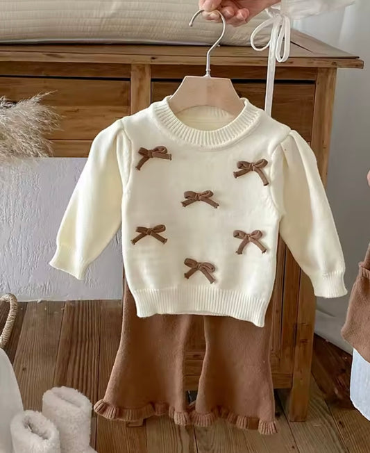 Girl Cream Knit Bow Sweater & Rust Bell Bottoms Set