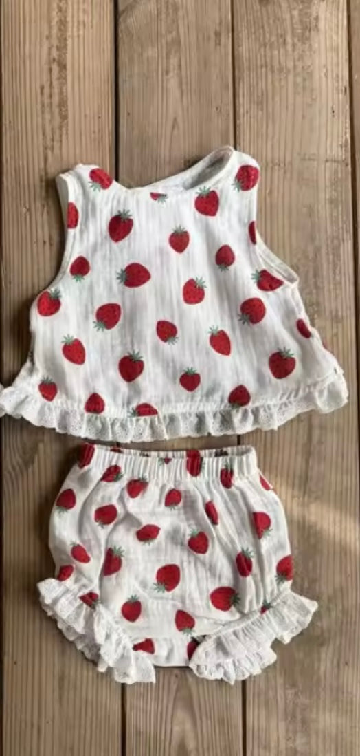 Girl Ruffle Sleeveless Cream Floral Summer Set