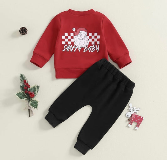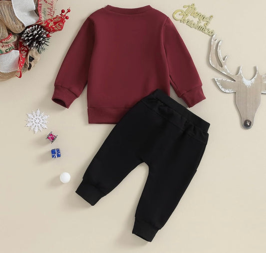 Christmas Burgundy Sweatshirt & Black Pant Set